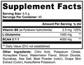 Ingredients: Vitamin B6 (as Pyridoxine Hydrochloride), L-Glutamine, BCAA 2:1:1, Citric Acid, Natural Flavors, Potassium Citrate, Silicon Dioxide, Sucralose, Sodium Chloride, Beet Powder (Color), Grape Skin Extract (Color), Acesulfame Potassium.