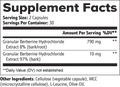 Ingredients: Granular Berberine Hydrochloride Extract 97% (bark), Granular Berberine Hydrochloride Extract 8% (bark/root), Cellulose (vegetable capsule), MCC (microcrystalline cellulose), L-Leucine, Olive Oil.