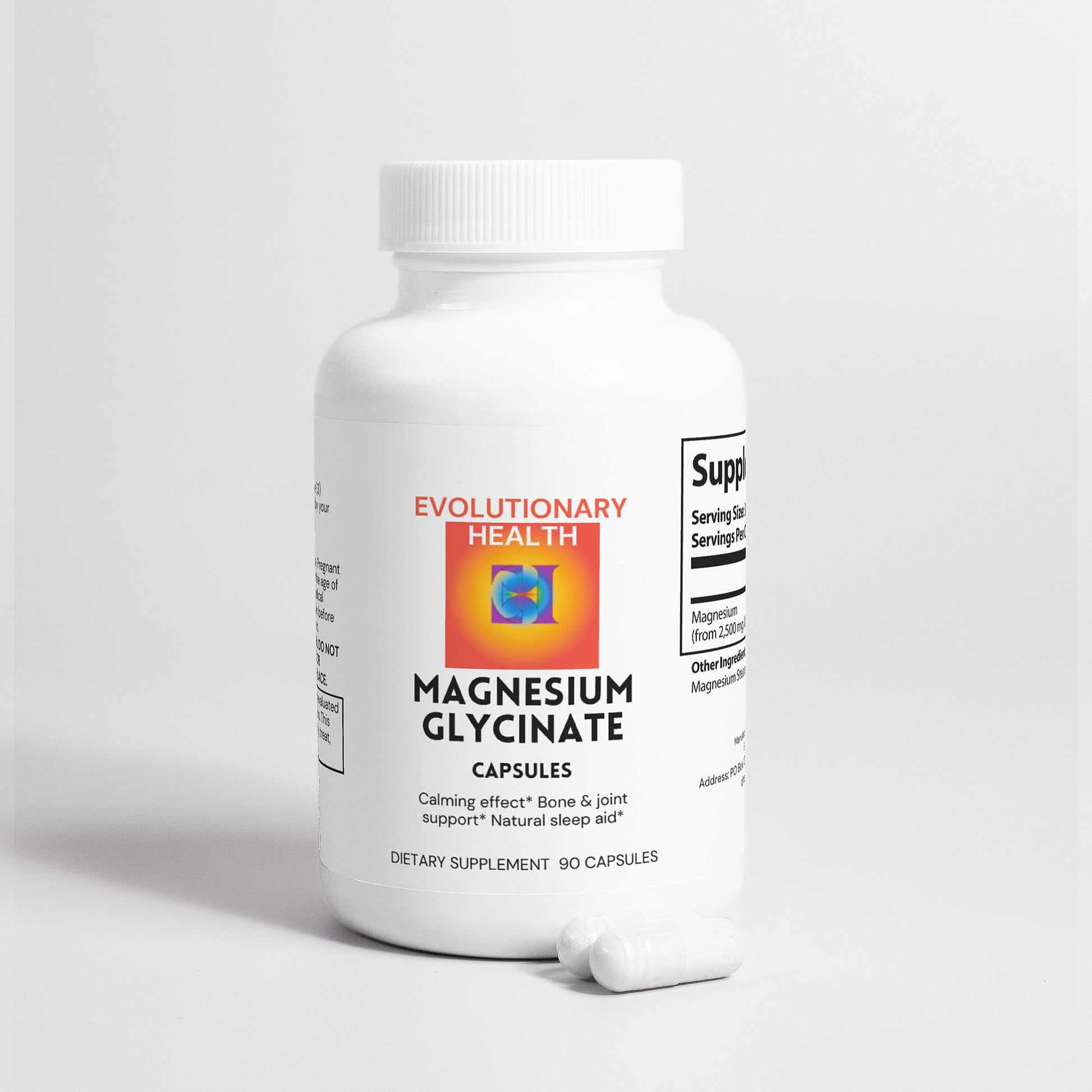 Ingredients: Magnesium (from 2.500mg Magnesium Glycinate), Hypromellose (capsule), Magnesium Stearate, Silicon Dioxide, Rice Flour.