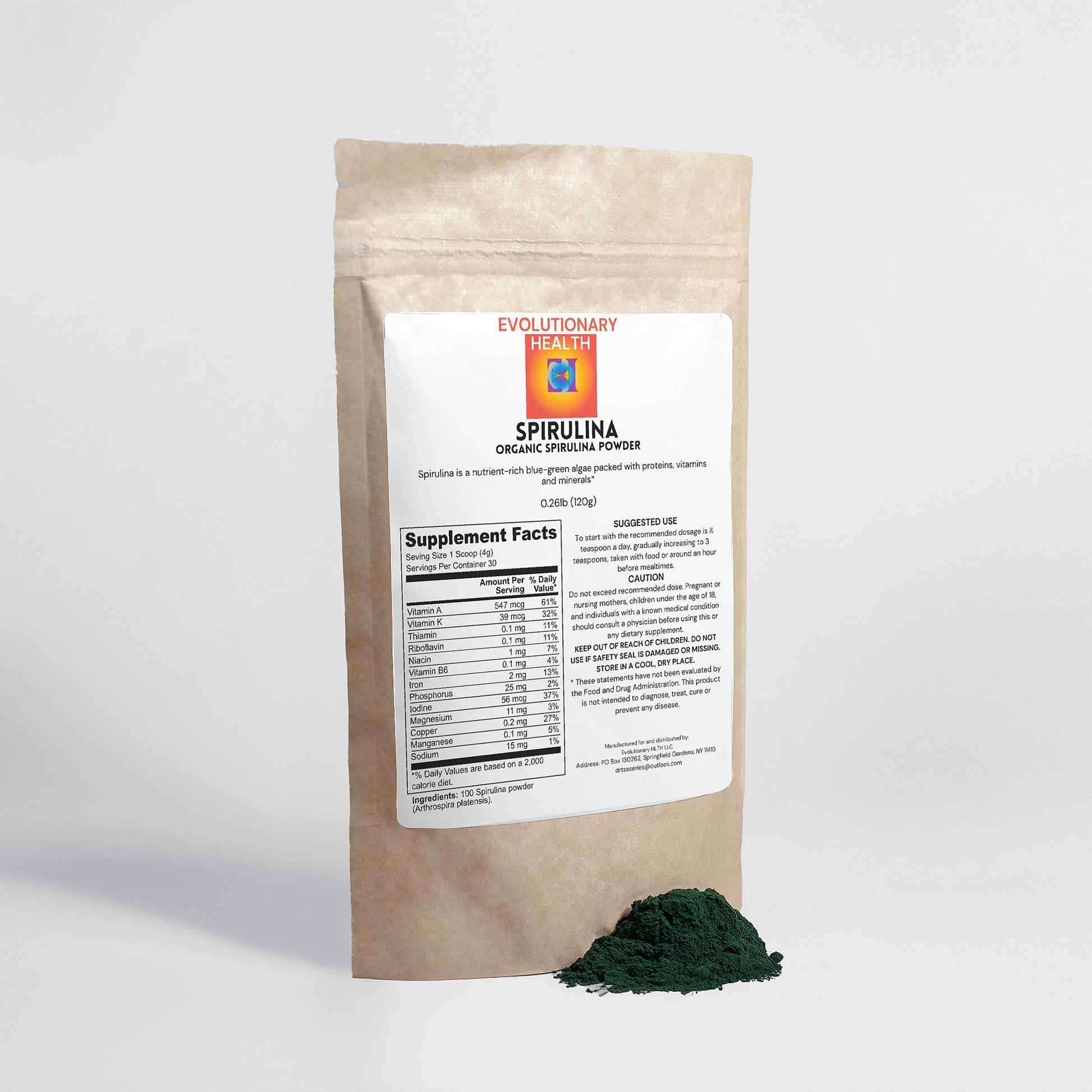 Ingredients: 100% Spirulina Powder (Arthrospira platensis).