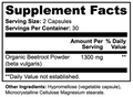 Ingredients: Organic Beetroot Powder (beta vulgaris), Cellulose (Vegetable Capsule), Microcrystalline Cellulose, Magnesium Stearate.