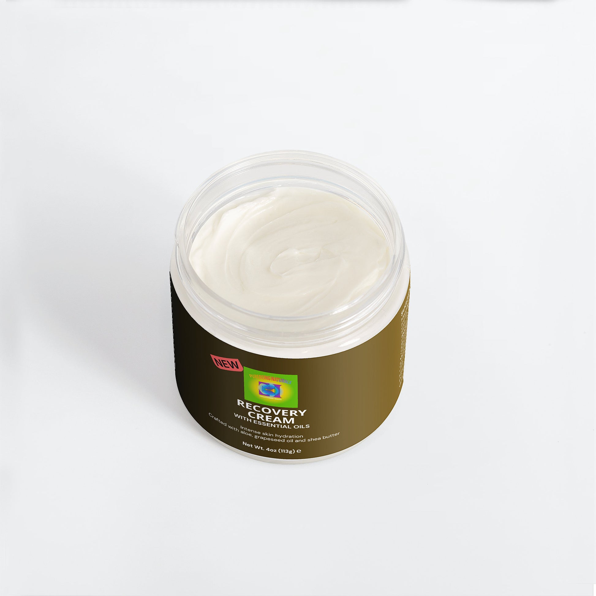 Experience the ultimate comfort with our specially formulated Recovery Cream—a premium cosmetic skincare solution that combines the soothing properties of aloe, grapeseed oil, and our essential oil blend to provide a silky, hydrating sensation for your skin.